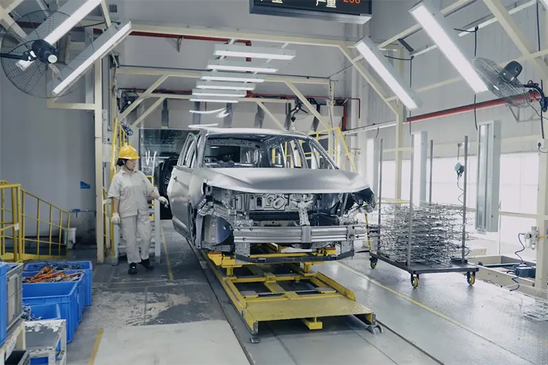 Proizvodni proces vključuje štancanje, varjenje, lakiranje in montažo. Podjetje razpolaga z napredno opremo, vključno s 5000-tonsko hidravlično stiskalnico, ter samostojno izdeluje karoserijske okvirje. Montažni proces temelji na učinkovitem sistemu logistike in razporejanja, ki omogoča visoko produktivnost in natančnost. Uporablja se avtomatiziran transport ter robotsko varjenje, pri čemer stopnja avtomatizacije dosega približno 80 %. Za izboljšanje odpornosti proti koroziji se uporablja postopek katodne elektroforeze (EP), medtem ko je proces lakiranja v celoti avtomatiziran.